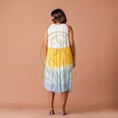 Leading Manufacturers, Wholesaler and Exporters of Ladies Brown Cotton Printed Maxi Dress, Ladies White Linen Flared One Piece Dress, Ladies White Linen One Piece Dress, Tie Dye Purple and White Ladies Shirt Dress and White and Yellow Chiffon One Piece Dress from Jaipur.