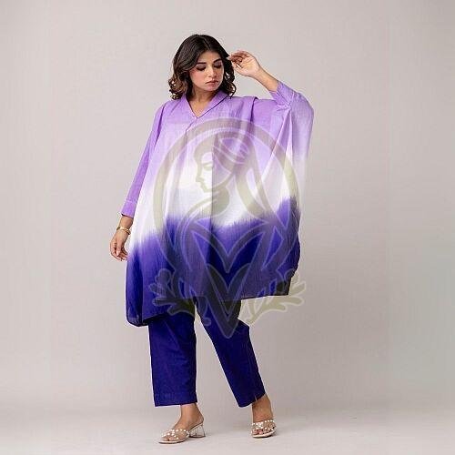 Home › Products › Ladies Kaftan Dress › Ladies Purple Loose Fit Kaftan Style Top With Pant Set